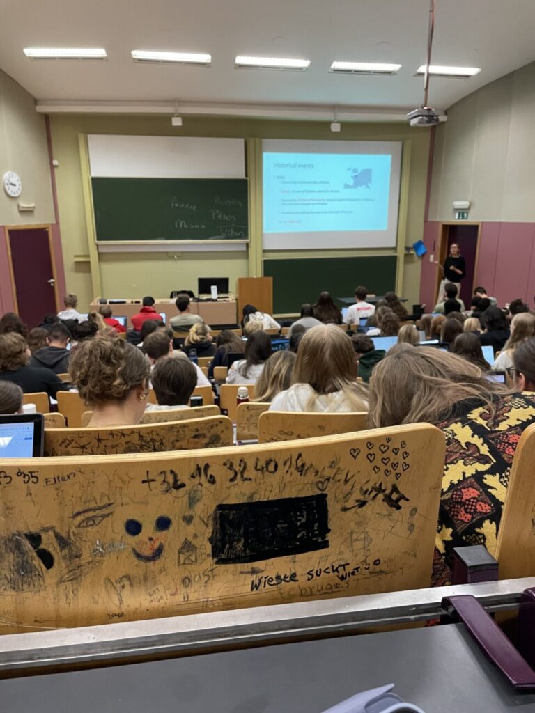 授業は英語で行われ、1コマ3時間と集中力を要しました。出席点がない授業も多く、試験やレポートで成績が決まるため興味のある授業を選び、事前に資料を読み込むことで理解を深めました。前期は教授の説明を聞き取ったりノートを取ったりするのに苦労しましたが、後期にはリスニング力が向上し、内容を十分に理解できるようになりました。グループワークやプレゼンテーションもあり、現地学生の進め方やアカデミックな構成に驚かされました。ゲント大学の学生は真面目で、成績評価も厳しいためか卒業に向けて真剣に取り組む姿勢から多くの刺激を受けました。