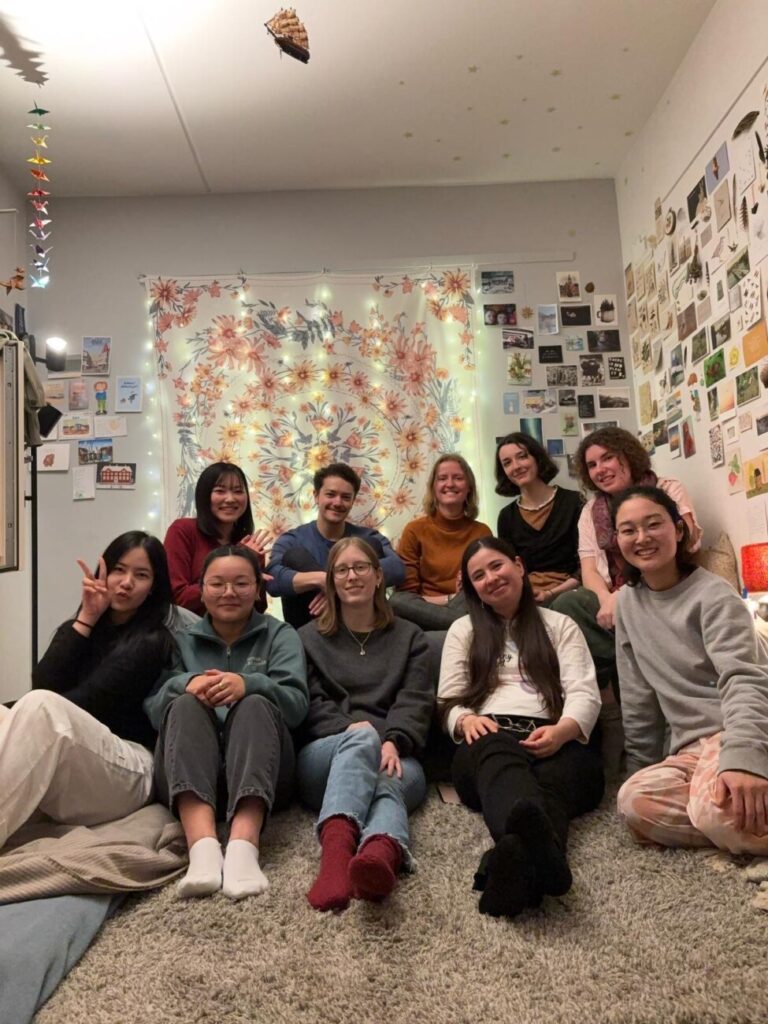 カールスタード大学では留学生向きに様々なイベントがあります。現地の学生も参加するものもあります。また、寮は基本的に留学生が住むのでそこで交流も多くあるので、友達や知り合いを増やしたり、仲良くなる機会が比較的多くあるように思います。特にインターナショナルディナーというイベントが思い出に残っていて、留学生それぞれの国の料理を振舞ってビュッフェ形式で会話をしながら食事を楽しみます。一年間で2回あり、私たち金大生はおにぎり、にくじゃが、お好み焼きを振舞いました。その時に、ヴィーガンやベジタリアン用の料理も作る留学生が多くまた、ベジタリアンの留学生も多くいたので私たちもアレンジした日本食を作りました。また、ホストファミリーという制度ではスウェーデンの家族と話したり出かけたりする機会を設けてくれます。さらに、カールスタード大学の学生ならだれでも参加できるスポーツ活動があり、様々なスポーツやダンスがあり、スポーツはゲーム中心でダンスは学生の経験者が教えてくれるレッスン形式で活行っていました。このように授業以外に様々な交流の場を設けてくれるのがカールスタード大学の良さだと思います。