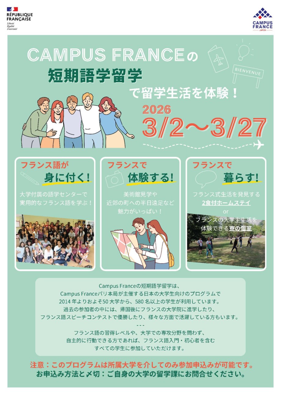 Campus Franceのフランス短期語学留学 2026年春季セッション