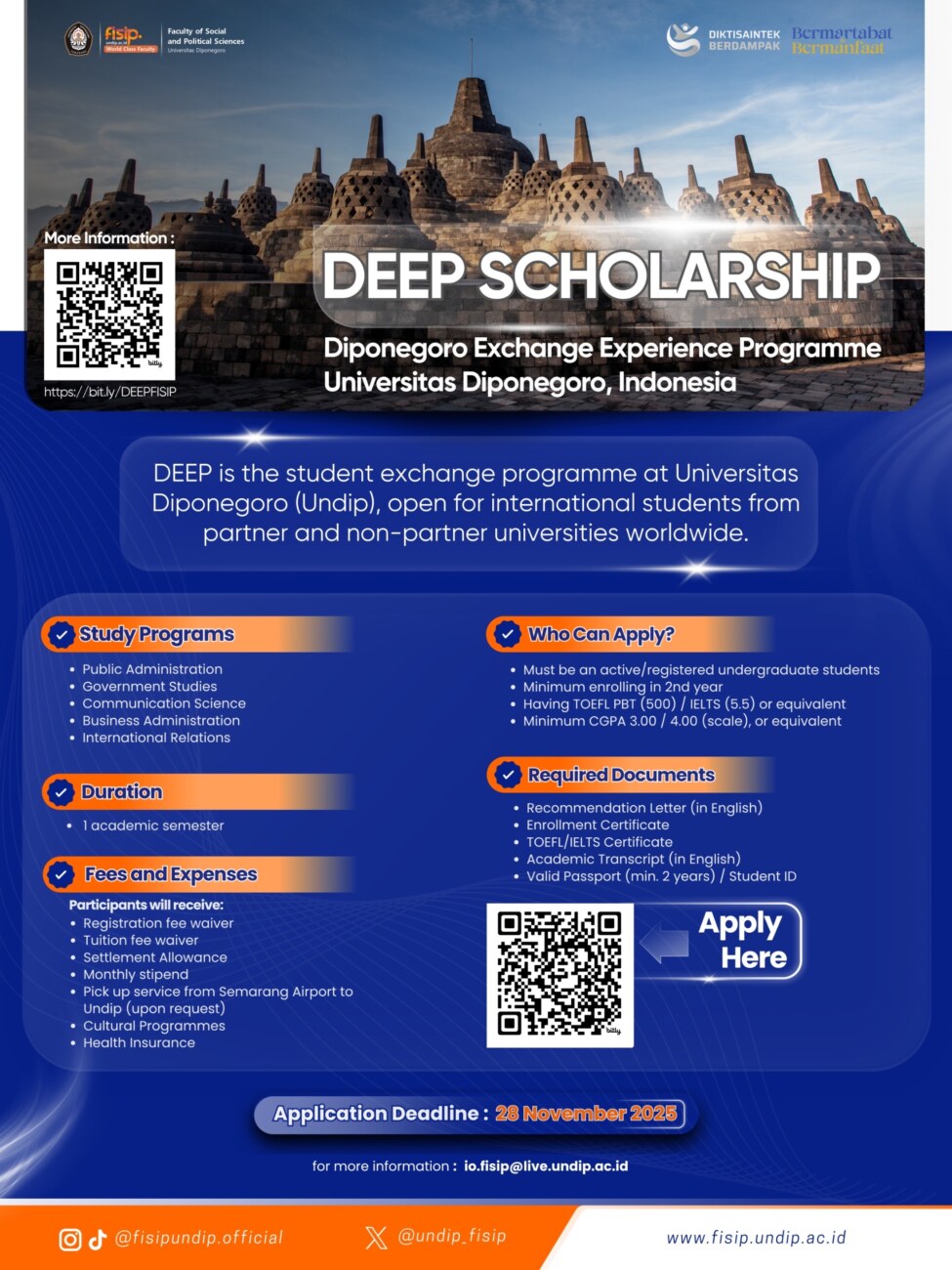 プログラム:DEEP Scholarship (Spring 2026) Exchange Program Universitas Diponegoro, Indonesia