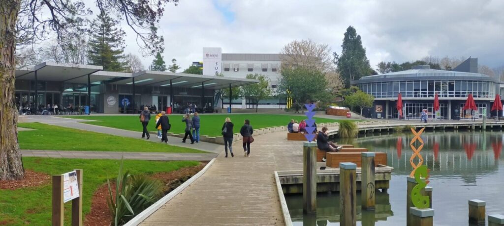 私たちのクラスでは毎週特定のテーマについて、一人5分ほどのパワーポイントを用いたプレゼンテーションを行っていました。教科書の単元に沿ったテーマ内でそれぞれ興味のある内容を選び、各々パワーポイントと原稿を制作するという自由度の高い課題でした。他には、旅行プランのチラシを各自で作って英語で旅行会社のエージェントと客という体でデモンストレーションを行いました。また、大学の図書館を使わせて頂き、読みやすい英語の本を借りてレビューをするという課題もありました。通常の英語の授業に加えて、マオリ族の文化について学ぶ授業が二週目にあり、そこでマオリ族の歌を学んだり、棒を使って歌に合わせて演奏したりとさまざまなことを学びました。ワイカト大学のキャンパス内探索や毎週木曜日に行われていた無料のEnglish clubなどで有志の現地学生の人たちと交流ができ、ハミルトンのおすすめスポットやニュージーランドの美味しいお菓子なども紹介してもらいました。プログラム内に彼らとの交流ができるボウリング会なども含まれているので仲良くなることができました。彼らは日本に興味があり、積極的に質問してくれるほか、私たちの英語が拙くてもゆっくり聞いてくれるため、こちらも焦らず言いたいことを伝えられました。クラスには日本人だけでなくさまざまな年齢や国籍の人がいました。日本人ばかりだと日本語で話してしまいそうだなと思っていましたが、私たちのクラスにはスリランカ人の人と中国人の人がおり、彼らと意思疎通を図るためにも半強制的に英語を話さざるを得ないという状況に置かれたことで、英語で表現して伝えるのが上手くなったと思います。スケジュールも自由度が高く、休日には自分たちで計画するなどしてさまざまな場所に出かけ、英語だけではなくニュージーランドについても理解と見識を深められる、素敵な経験でした。